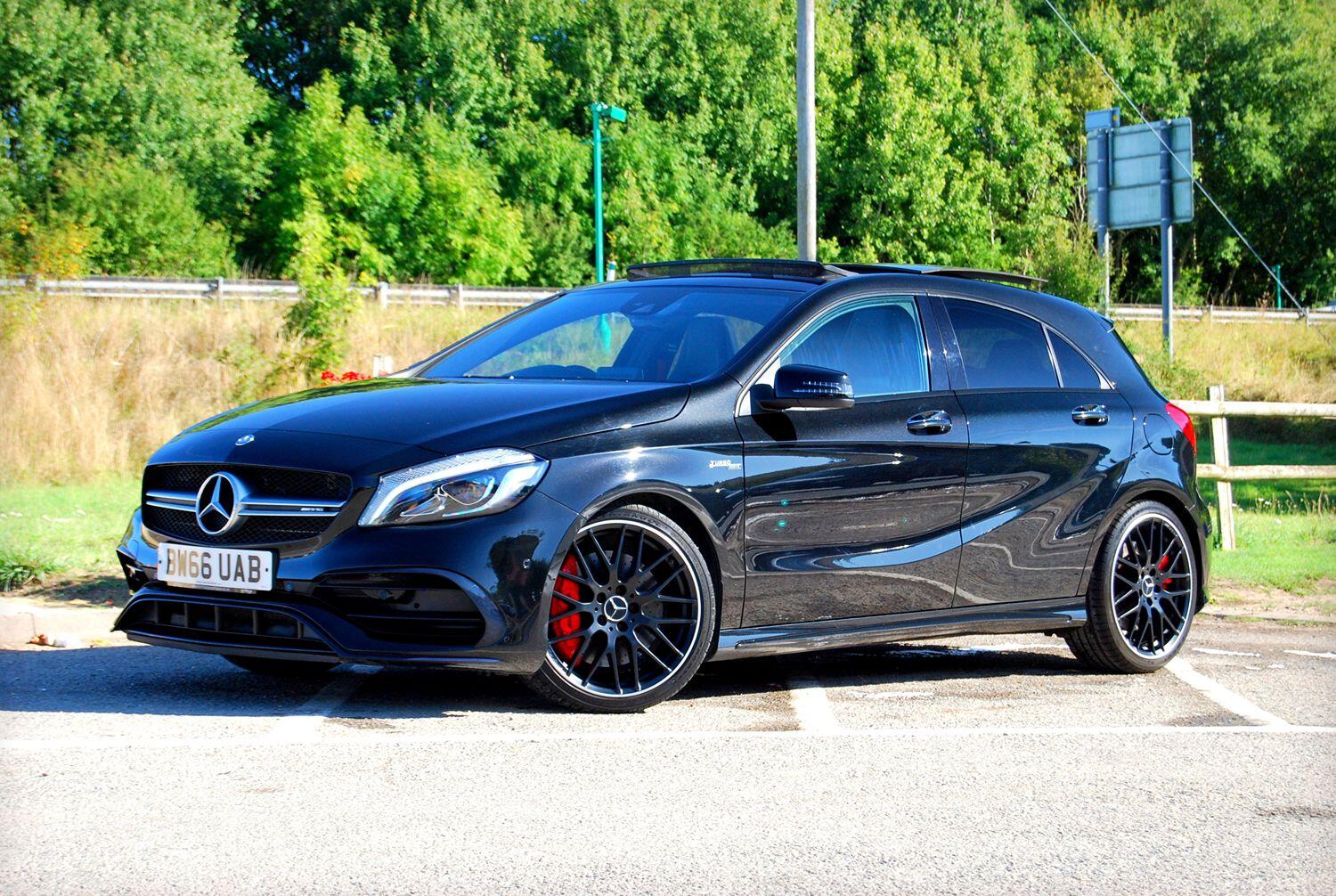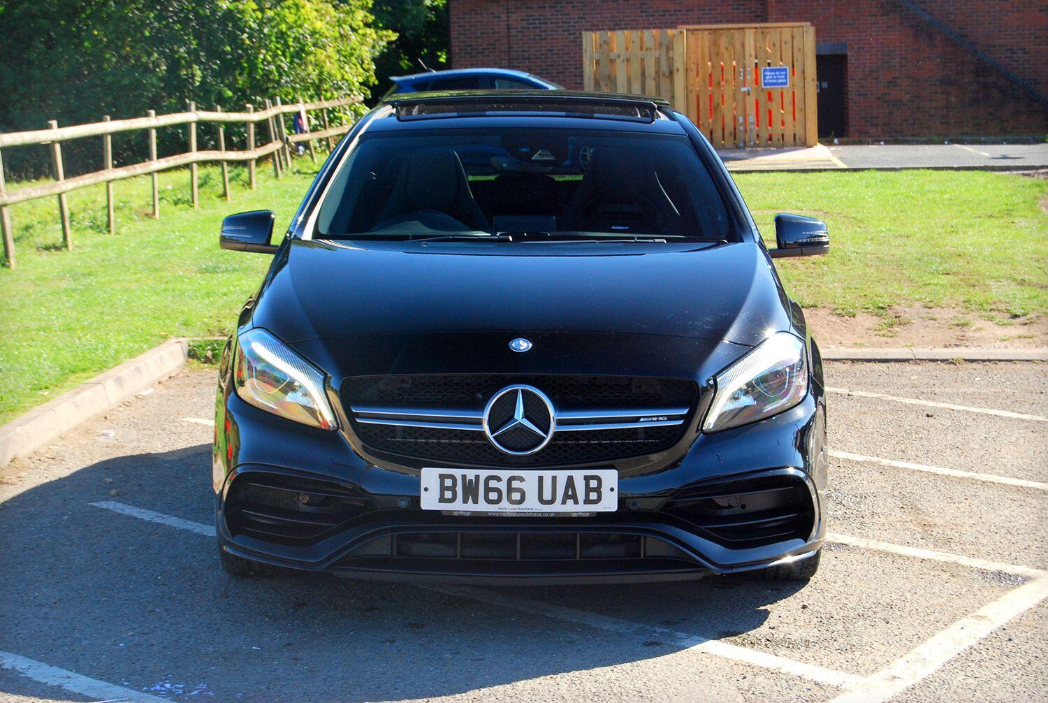 2016/66 Mercedes-Benz A-Class A45 AMG 4MATIC 2.0 5-Door Hatchback covered 51,700 miles in Metallic Cosmos Black. 7-Speed AMG SpeedShift DCT Semi-Automatic.